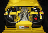 開閉機構にネジ軸とナットを採用しています。 ネジピッチを小さくする事によりネジの抵抗が発生するセルフロック機能で、コイル荷役時にアームが勝手に開く事故が皆無となっています。 |